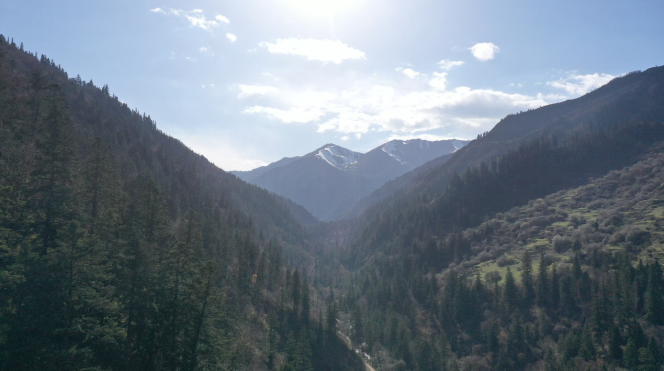 包干都山初夏繁花盛放,花期長達1月有余,當地人們稱之為“格桑花”。格桑花又稱格桑梅朵,具體為何種植物存在廣泛的爭議。在藏語中,“格?!笔恰懊篮脮r光”或“幸福”的意思,“梅朵”是花的意思,所以格?;ㄒ步行腋;?,長期以來一直寄托著藏族人民期盼幸福吉祥的美好情感。有豐富的森林景觀,以秋季彩林觀賞價值最高。