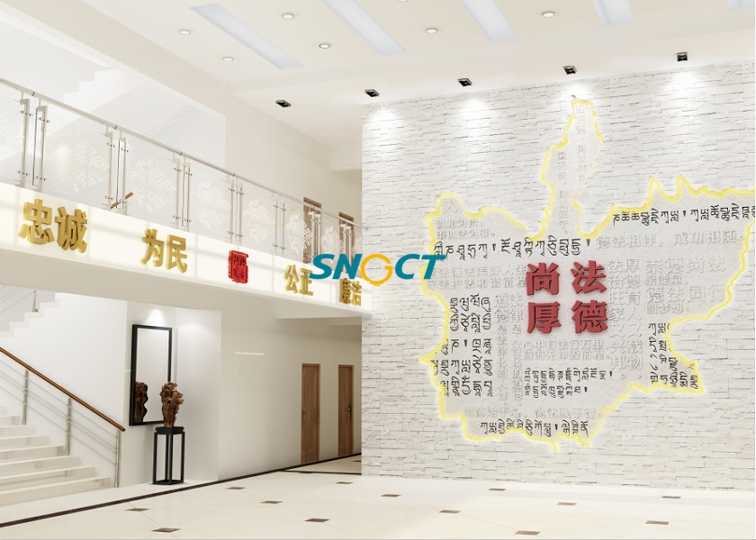 阿壩縣人民檢察院位于阿壩藏族羌族自治州阿壩縣阿壩鎮。以“守護一方凈土”為主線,通過規劃四個主題來詮釋主線:以檢凝民心、丹心為民意、正本亦清源、和光煦檢路,結合當地獨特的民族元素展現檢察文化、職能文化、紀律文化和團隊文化,將阿壩縣檢察人以普法力、服務力、戰斗力、關懷力守護阿壩縣山水人城一方凈土的故事娓娓道來。本次設計的主題為:一樓“以檢凝民心”,二樓“丹心為民意”,三樓“正本亦清源”,四樓“和光煦檢路”。